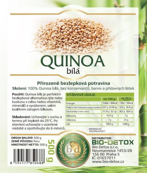 Produkt Bio-Detox Quinoa 500g vypadá velice zajímavě. Vyrábí ho vyhledávaná značka Bio Detox. Podívejte se na bližší informace.